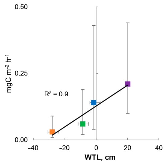 As a quantitative measure of the seasonal variability (sLRV—seasonal LRV) of methane fluxes at the sites under consideration (EL, FL, DEP, STR), we used the level of relative variability for fluxes measured at the same sites during the season (Table 3). To exclude the effect of interannual variability, different years were considered separately.