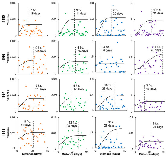 1998 is also characterized by a large average spLRV, but the reason for this is the methane flux measurements made in May (spLRV is equal to 580%): when calculating the median (instead of the average) of the annual spLRV variability, we obtained 53% for 1998, which characterizes the spatial variability in this year as the smallest among others.