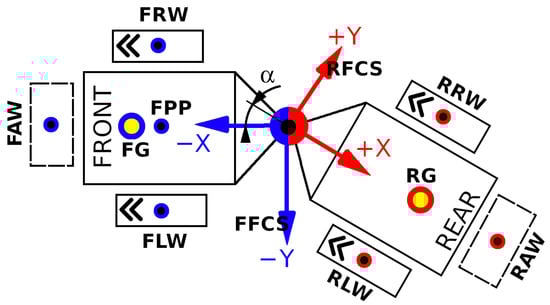 - Coordinates of centers of gravities for front (FG) and rear (RG) frames;