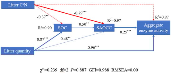 3.6. Relationship between Litter C/N, Litter Quantity, Soil Aggregate Organic C Contents and Aggregate Enzyme Activity