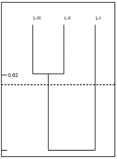 The community similarity of the species composition for Uropodina mites inhabiting each ground plot was calculated by means of the Marczewski–Steinhaus species similarity index: S = c/(a + b − c), where c is the number of species present in both compared communities, and a and b stand for the total number of species in each community [14]. The full joining analysis, which uses the most distant neighbors, was used to draw the dendrogram. The analyses were calculated with AnalizaTor 2.0 software (Poznań, Poland).