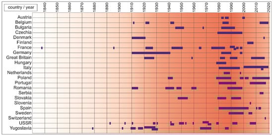 Timescale of oak decline episodes in European countries (according to [,,,,,,,,,,,,,,,,,,,,,,,,,,,,,,,,,,,,,,,,,,,,,,,,,,,,,,,,,,,,,,,,,,,,,,,,]).