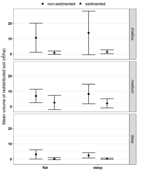 A significant amount of soil was redistributed, averaging 52.8 m3/ha (Figure 3).