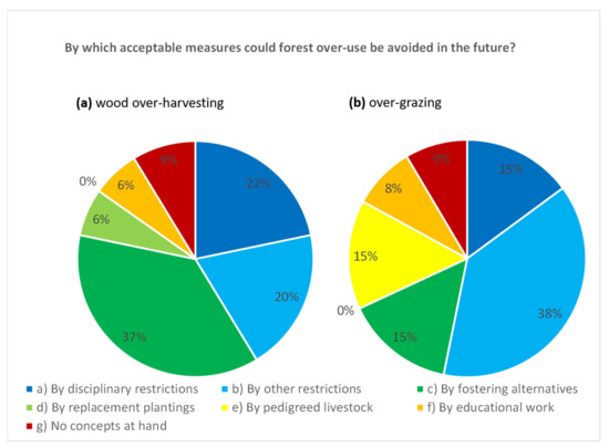 - Fostering alternatives—In the question about reducing fuel wood over-harvesting, the proposed alternatives were coal, dung, solar, biogas, gas, and electricity, for example: “Reducing the price of coal, to be able to get enough of it”. In the question about reducing over-grazing, the proposed alternatives were to prepare more hay or other winter fodder, for example: “By preparing hay for the livestock”, or “By preparing more fodder”.
