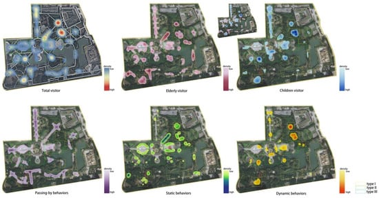 - Zhongping, Z.; Yali, W.; Haoxuan, P. Research on Tourist Recreation Behavior Based on SOPARC and KDE activity in an urban environment in an Example. Chin. Landsc. Archit. 2019, 35, 5. [Google Scholar]