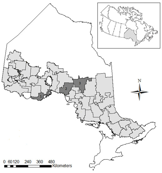 - Watkins, L. The Forest Resources of Ontario 2011; Ontario Ministry of Natural Resources, Forest Evaluation and Standards Section, Forests Branch: Sault Ste. Marie, ON, Canada, 2011; pp. 1–307. Available online: https://docs.ontario.ca/documents/3254/forest-resources-of-ontario-2011.pdf (accessed on 4 July 2022).
