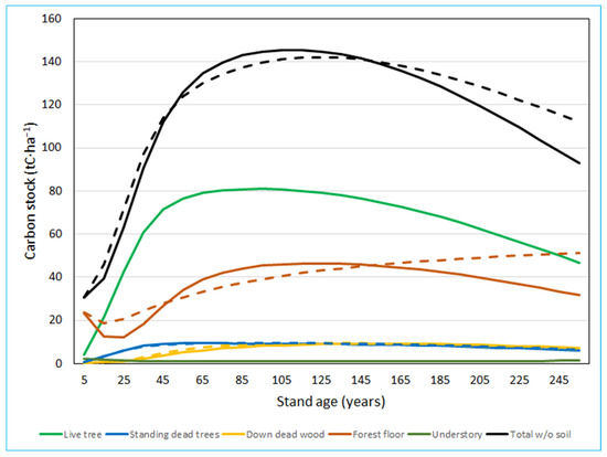 - Simmons, J.A.; Fernandez, I.J.; Briggs, R.D.; Delaney, M.T. Forest floor carbon pools and fluxes along a regional climate gradient in Maine, USA. For. Ecol. Manag. 1996, 84, 81–95. [Google Scholar] [CrossRef]