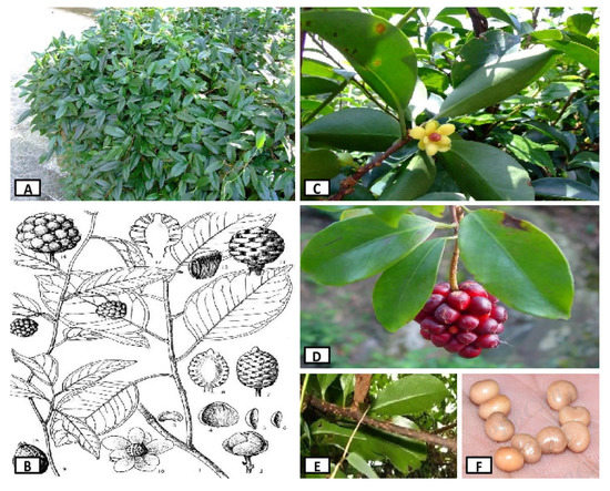 Kadsura longipedunculata Finet & Gagnepain [15] (commonly known as Hong-mu-xiang or the Chinese Kadsura vine) is an evergreen shrub, scandent and woody vine that belongs to the family Schisandraceae [18]. The genus Kadsura Kaempf. ex Juss. [19], comprises about 17 species [20], of which eight species (four endemic) are recorded in China [21,22], and is mainly distributed in southern and south-western parts of China, as well as eastern Asian countries [23,24,25,26]. K. longipedunculata is one of the most common species in China, and is recorded from Zhejiang, Anhui, Sichuan, Fujian, Guizhou, Jiangsu, Guangxi, Guangdong, Hunan, Hubei, Jiangxi, and Yunnan [21]. The species is found in the hillsides of forests, or rocky slopes, along streams, at an altitude of 100–1300 (−1500) m. Flowering occurs between June and September, and fruiting between September and December [27]. Individuals of certain Kadsura species change sex from year to year, and the plant produces unisexual flowers (monoecious) [28,29]. Male flowers (red or yellow androecium) have a wide range of morphologies, with many different androecial forms [30], while the gynoecial (green) structure is more consistent [23,26]. The fruits have high nutritional value and are rich in vitamin C, higher fat, proteins, and dietary fiber. Furthermore, butanoic acid methyl ester is the most common compound in terms of floral odours (96.8%) [31], and chromosome number (2n = 28) of this species [32,33]. Previous molecular studies have reported that the genera Kadsura and Schisandra are not monophyletic [25,34]. However, the Wu et al. [35] study based on the complete plastome of K. longipenducluata confirmed that the genus kadsura is monophyletic and formed a clade with E. heteriocilita [25]. However, both genera share highly similar morphologic and anatomic characteristics [23,36,37]. Due to morphological similarity, Schisandra fruits may easily be confused with the dried fruits from Kadsura species [38,39]. Furthermore, stomata and other epidermal characters suggest close phylogenetic affinities of Kadsura and Schisandra, whereas Kadsura seems more complex than Schisandra on the basis of the characters of the leaf epidermis [40].