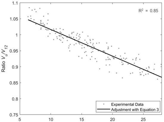 The experimental adjustment parameters are shown in Equations (4) and (5). These were found using the nlinfit tool, where the factors were obtained using least squares with a 95% confidence interval, considering that the ku parameter was k1 = 1.