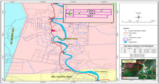 Figure 1 shows a research location in the community-owned forest in Jabiren Village, Pulang Pisau Regency, Central Kalimantan Province.
