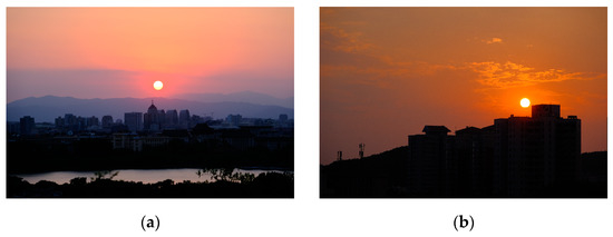 Recognition effect of Y4SED model on pictures containing interferences (sun). (a) The model has no false detection and strong anti-interference ability; (b) The model has no false detection and strong anti-interference ability.