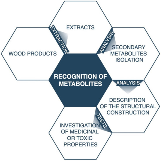 A simplified process of identifying secondary metabolites obtained in vitro from wood products.
