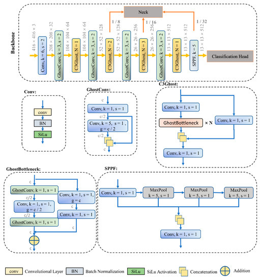 - Han, K.; Wang, Y.; Tian, Q.; Guo, J.; Xu, C.; Xu, C. Ghostnet: More features from cheap operations. In Proceedings of the IEEE/CVF Conference on Computer Vision and Pattern Recognition, Seattle, WA, USA, 13–19 June 2020; pp. 1580–1589. [Google Scholar]