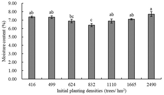 Chicago/Turabian StyleSang, Yaru, Xiangyang Kang, and Pingdong Zhang. 2022. "Effect of Initial Planting Density on the Moisture Content and Chemical Composition of the Triploid Chinese White Poplar (Populus× tomentosa Carrière) Plantation" Forests 13, no. 9: 1494. https://doi.org/10.3390/f13091494