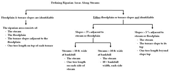 - Ilhardt, B.L.; Verry, E.S.; Palik, B.J. Defining Riparian Areas. In Riparian Management in Forests in the Continental Eastern United States; Lewis Publishers: Boca Raton, FL, USA, 2000; pp. 23–42. [Google Scholar]