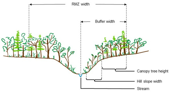 - Bren, L.J. The Geometry of a Constant Buffer-Loading Design Method for Humid Watersheds. For. Ecol. Manag. 1998, 110, 113–125. [Google Scholar] [CrossRef]