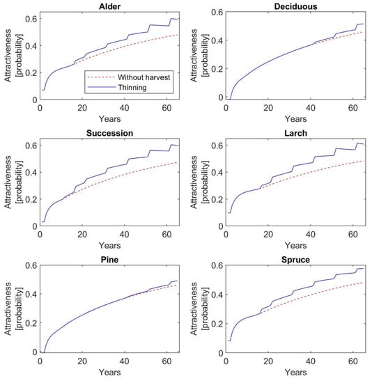 - Usher, M.B. A Matrix Model for Forest Management. Biometrics 1969, 25, 309–315. [Google Scholar] [CrossRef]