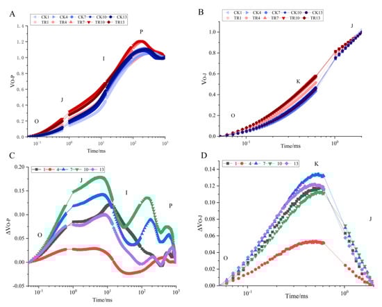 The difference in the OJIP parameters normalized in TR and CK was calculated separately according to the following formulas: