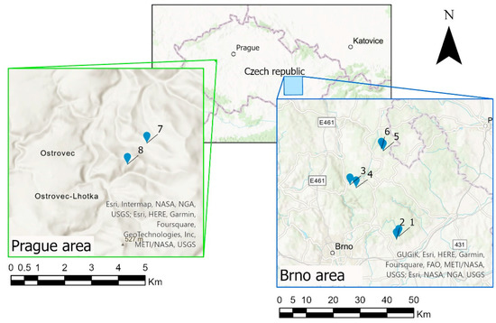 | 1 | Brno | N 49°14′0.67″ E 16°49′33.13″ | 446 | 4 | 6 | 8.8 | mixed |