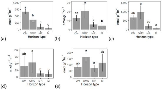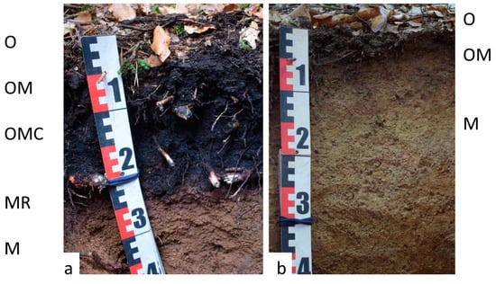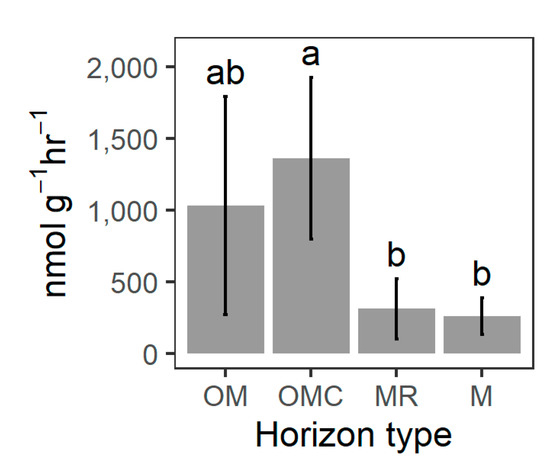 - Andersson, M.; Kjøller, A.; Struwe, S. Microbial Enzyme Activities in Leaf Litter, Humus and Mineral Soil Layers of European Forests. Soil Biol. Biochem. 2004, 36, 1527–1537. [Google Scholar] [CrossRef]