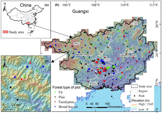 This project is a part of the Fifth Forest Management Inventory Project of Guangxi Zhuang Autonomous Region (5th FMI-GX, 2017—2020), China. The airborne LiDAR data acquisition and preprocessing and field data measurement were funded by the finance department of the Guangxi Zhuang Autonomous Region. The authors would like to express their sincere gratitude to Chengling Yang and Yao Liang from the Guangxi Forest Inventory and Planning Institute (FIPI-GX) and to the 120 other field crews who worked on the field measurements. The authors also thank Guangxi 3D Remote Sensing Engineering Technology Co., Ltd., Feiyan Aero Remote Sensing Technology Co., Ltd., Zhongke Remote Sensing Technology Group Co., Ltd., and Guangzhou Jiantong Surveying and Mapping Geographic Information Technology Co., Ltd. These companies were responsible for the acquisition and preprocessing of the airborne LiDAR data utilized herein. We thank the anonymous reviewers and the editor for their insightful suggestions.