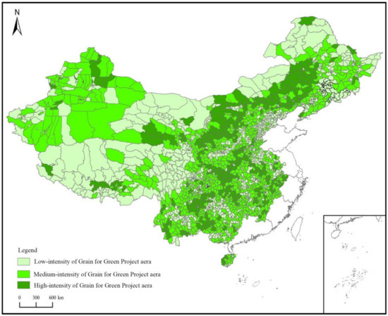 - Treacy, P.; Jagger, P.; Song, C.; Zhang, Q.; Bilsborrow, R.E. Impacts of China’s grain for green program on migration and household income. Environ. Manag. 2018, 62, 489–499. [Google Scholar] [CrossRef]