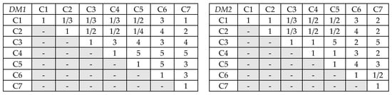 After normalization in (7), the weights wi (i = 1, …, n) can be used for decision-making by standard MCDM methods such as TOPSIS, CP, and others.