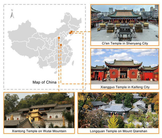 - Yuan, M. Studies on Chinese Contemporary Buddhist Architecture in the Han Area. Ph.D. Thesis, Tsinghua University, Beijing, China, 2008. (In Chinese). [Google Scholar]