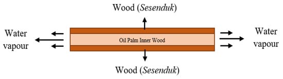 Oil palm trees were felled in a private plantation near Taman Saujana Putra, Puchong, Selangor, Malaysia, for the extraction of OPW. Oil palm trunks were sawed to produce OPW with a thickness of 5 cm. Only the woody part of the trunk’s inner part (called inner wood) was used in this study. The inner part of the oil palm trunk was extracted using polygon sawing method as mentioned in Hamzah et al. [16].