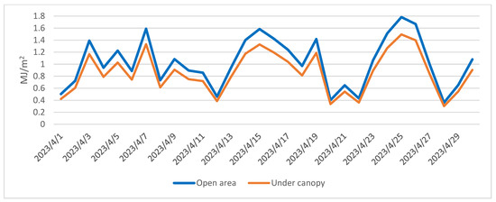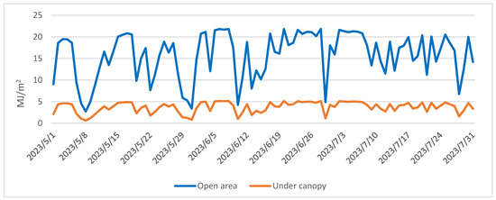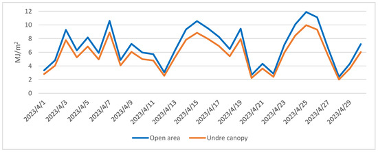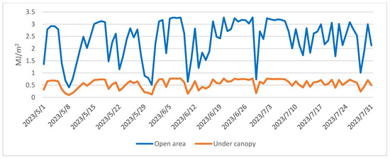 Explicit heat is allocated to the turbulent heat flux in the atmosphere and heat flux within the soil. The fraction of latent heat contributes to evaporation, equating to the product of latent heat of evaporation and the rate of evaporation. This latent heat is contingent upon the temperature of the evaporating surface [1]. The open area exhibits temporal variations in heat expenditure for evaporation (Figure 4).