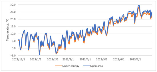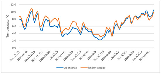 The features of air and soil temperature changes in the open area and under the forest canopy by season are considered. It has been identified that the average daily air temperature within the forest during the studied period consistently surpasses the temperature in the open area. This is attributable to the presence of the canopy, and its influence becomes more pronounced as it develops. Regarding soil temperature values, it is noteworthy that heat retention beneath the canopy persists during the winter period, with values stabilizing in March. As the vegetation period commences in the forested area, a decline in temperature becomes evident.