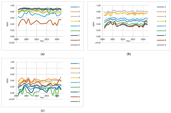 - Ghorbanian, A.; Mohammadzadeh, A.; Jamali, S. Linear and Non-Linear Vegetation Trend Analysis throughout Iran Using Two Decades of MODIS NDVI Imagery. Remote Sens. 2022, 14, 3683. [Google Scholar] [CrossRef]
