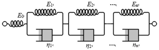 Step 1: Establishing the creep compliance theoretical model. The multi-branch Kelvin–Voigt (KV) phenomenological mechanical model is shown in Figure 3. The KV model was utilized to fit the creep compliance measurements obtained from the experiment, resulting in an analytical expression for the creep compliance J(t):