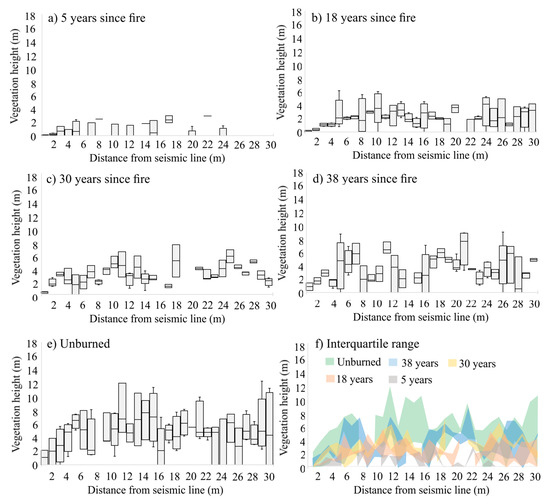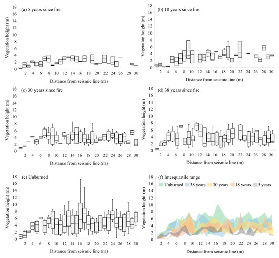 - Barber, Q.E.; Bater, C.W.; Dabros, A.; Pinzon, J.; Nielsen, S.E.; Parisien, M.-A. Persistent impact of conventional seismic lines on boreal vegetation structure following wildfire. Can. J. For. Res. 2021, 51, 1581–1594. [Google Scholar] [CrossRef]