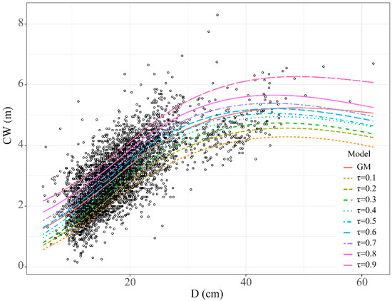 Liu, S.; Wang, J.; Jiang, L. Assessment of Potential Prediction and Calibration Methods of Crown Width for Dahurian Larch (Larix gmelinii Rupr.) in Northeastern China. Forests 2023, 14, 2022. https://doi.org/10.3390/f14102022