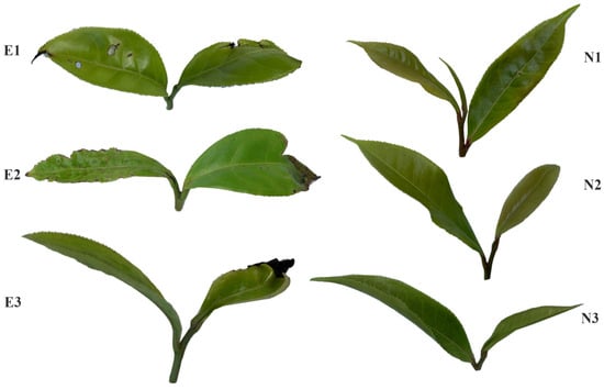 The tea plant leaves of C. tetracocca attacked by E. onukii are represented as E1, E2, E3 and the healthy leaves of C. tetracocca are represented as N1, N2, N3.
