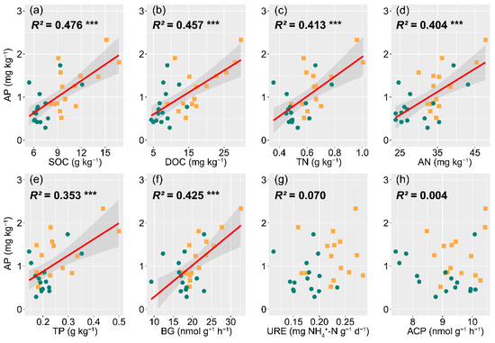 - Wang, J.P.; Chen, G.R.; Ji, S.H.; Zhong, Y.Q.; Zhao, Q.; He, Q.Q.; Wu, Y.H.; Bing, H.J. Close relationship between the gene abundance and activity of soil extracellular enzyme: Evidence from a vegetation restoration chronosequence. Soil Biol. Biochem. 2023, 177, 108929. [Google Scholar] [CrossRef]