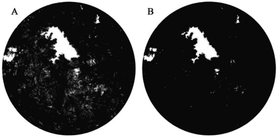 The whole-sky view was regarded as a grid, and the grid not covered by canopy was the open area, which was determined using a single parametric algorithm, where r is the number of grids without canopy components and R is the number of all grids.