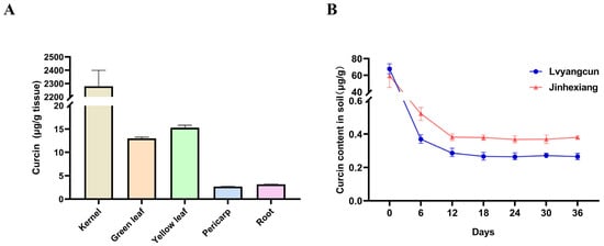 3.1.1. Possible Pathways of Curcin into the Soil and Its Degradation Dynamics in the Soil