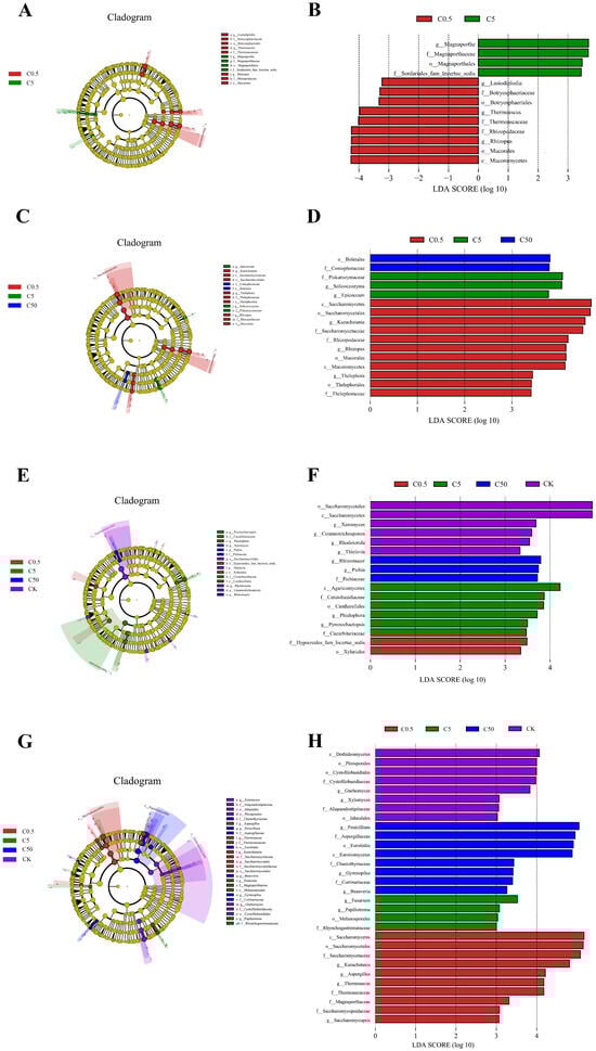 3.2.4. Indicator Groups of Soil Fungal Communities Treated with Different Concentrations of Curcin