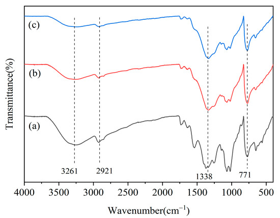 FTIR spectra of h-BN coatings with different mass concentrations. Note: (a) 1% h-BN; (b) 5% h-BN; (c) 10% h-BN.