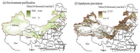(i) During the interval from 2000 to 2020, the GEP of the Three Northern region exhibited notable expansion, accompanied by sustained enhancements in various ecosystem service functions. The most remarkable rate of change was noted in the water conservation function, followed by carbon sequestration, oxygen release, soil retention, windbreak, sand fixation, flood regulation, and environmental purification functions.