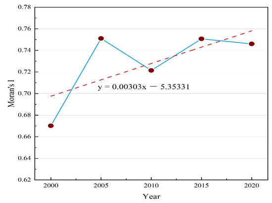 Change in the global Moran’s index from 2000 to 2020.