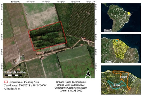 Location of the experimental area in the region of Marco—CE, Brazil.