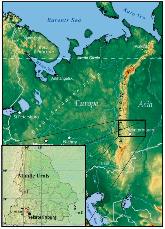 - Shakirov, A.V. Physical-Geographical Zoning of the Urals; UB RAC: Ekaterinburg, Russia, 2011; 618p. [Google Scholar]