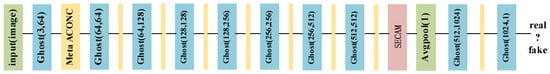 Discriminator model, where Ghost convolution layers and the Meta ACONC activation function alternate. At the end, attention is applied, and the true or false judgment results are obtained through pooling and channel reduction.