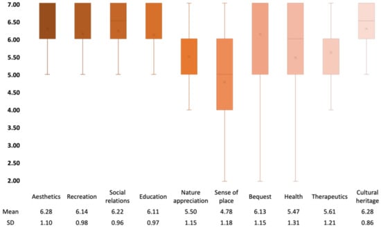 - Dickinson, D.C.; Hobbs, R.J. Cultural ecosystem services: Characteristics, challenges and lessons for urban green space research. Ecosyst. Serv. 2017, 25, 179–194. [Google Scholar] [CrossRef]