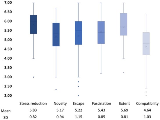 | PSR | PAR | Novelty | Escape | Fascination | Extent | Compatibility | |