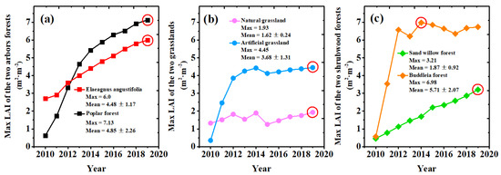 3.2. Annual Canopy Coverage Variation for Different Ecosystems