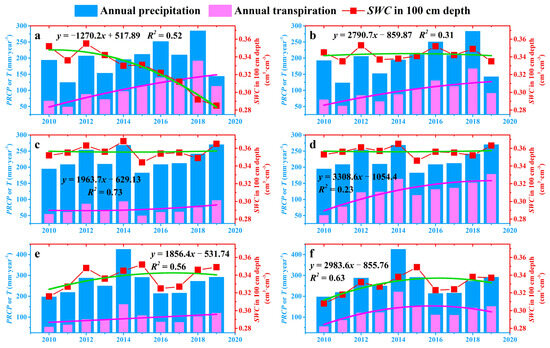 3.3. Relationship between Transpiration and Deep Soil Moisture for Different Ecosystems